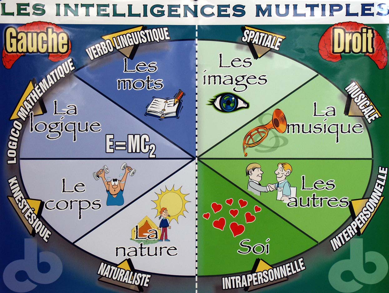 Dans l’atelier, nous avons pris connaissance du tableau en survol des intelligences multiples en relation avec des métiers et professions.